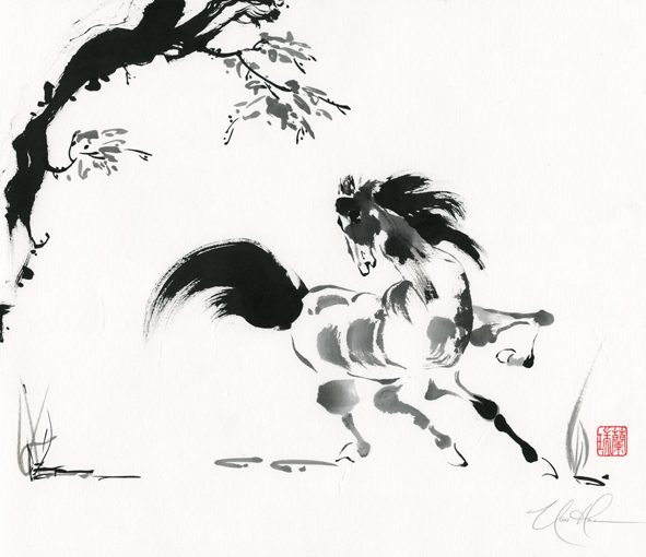This work is painted in Hsieh-i or Written Idea Form, derived from ancient Chinese calligraphy.